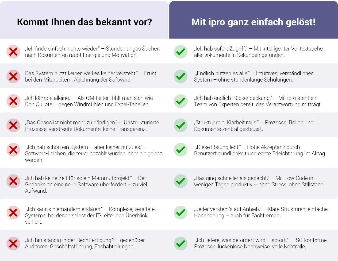 Bei ipro Consulting finden Sie Ihre Experten für maßgeschneiderte Lösungen im Bereich Qualitätsmanagement, Prozessdigitalisierung und Dokumentenmanagement. Mit über 30 Jahren Erfahrung und einem klaren Fokus auf die Anforderungen mittelständischer Unternehmen, Stadtwerke und soziale Einrichtungen machen wir Digitalisierung einfach, schnell und effizient.