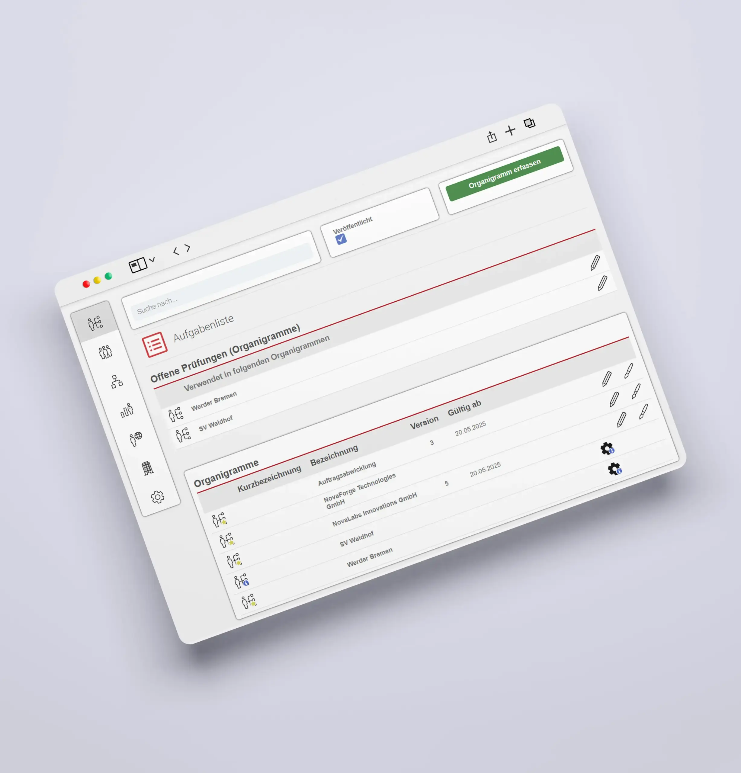 Mit der digitalen Aufbauorganisation erhalten Sie nicht nur ein Tool zur Visualisierung – sondern ein zentrales Steuerungsinstrument für Ihre Organisation. Freigaben, Versionierung, Klarheit über Zuständigkeiten und eine moderne Benutzeroberfläche machen die Applikation zu einem wertvollen Werkzeug für HR, QM und Führungskräfte.
