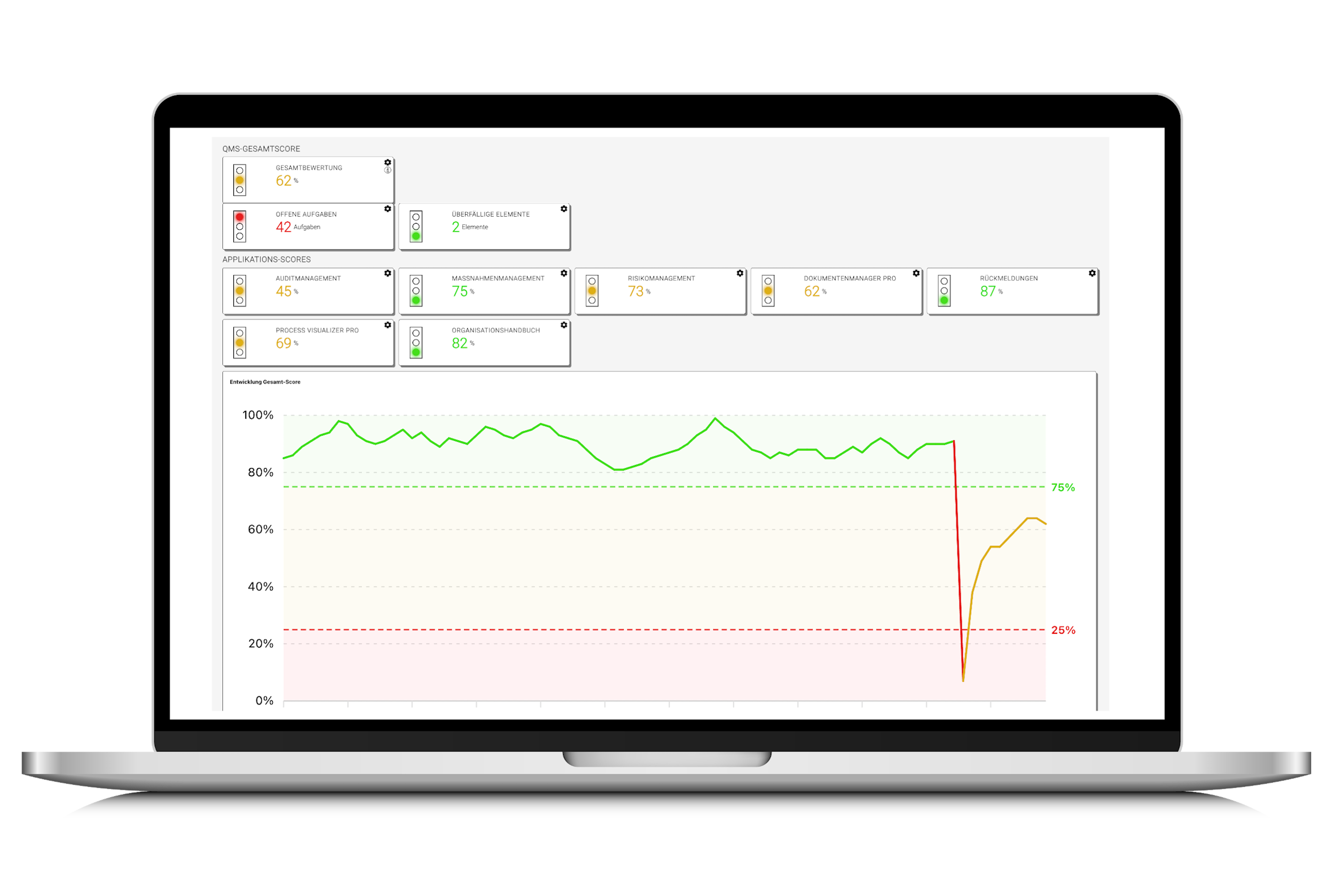 behalten Sie Ihr QMSystem immer im Blick. Trends, Risiken, Wirksamkeit und Abweichungen können somit frühzeitig erkannt und
